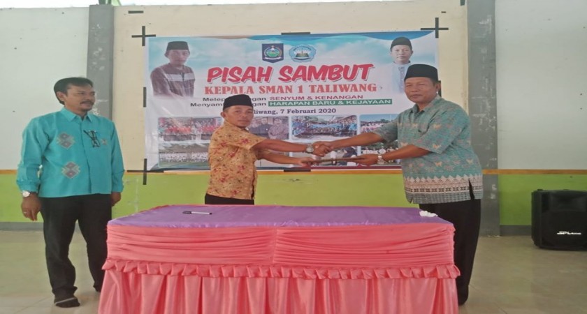 Acara pisah sambut kepala sekolah SMAN 1 Taliwang dari kepala sekolah yg lama Bapak Muhammad Nasir, S.Pd., M.Pd. kepada Bapak Fatham Han Irfan, S.Pd. dirangkaikan pula dengan perpisahan atas di mutasi tugasnya Bapak Poniman Januri, S.Pd., M.Pd. (07022020)